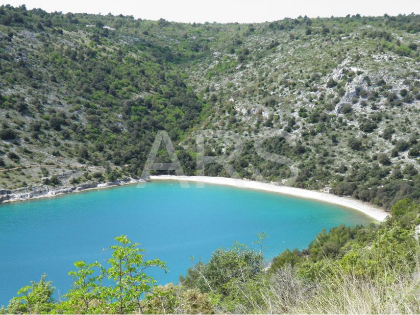 Zemljište pravilnog oblika na rubu naselja u blizini mora.