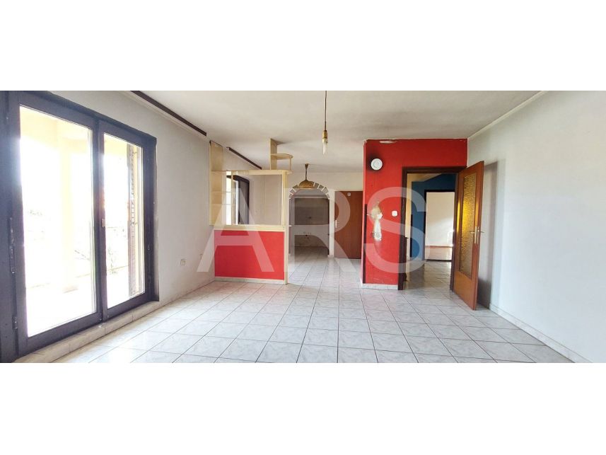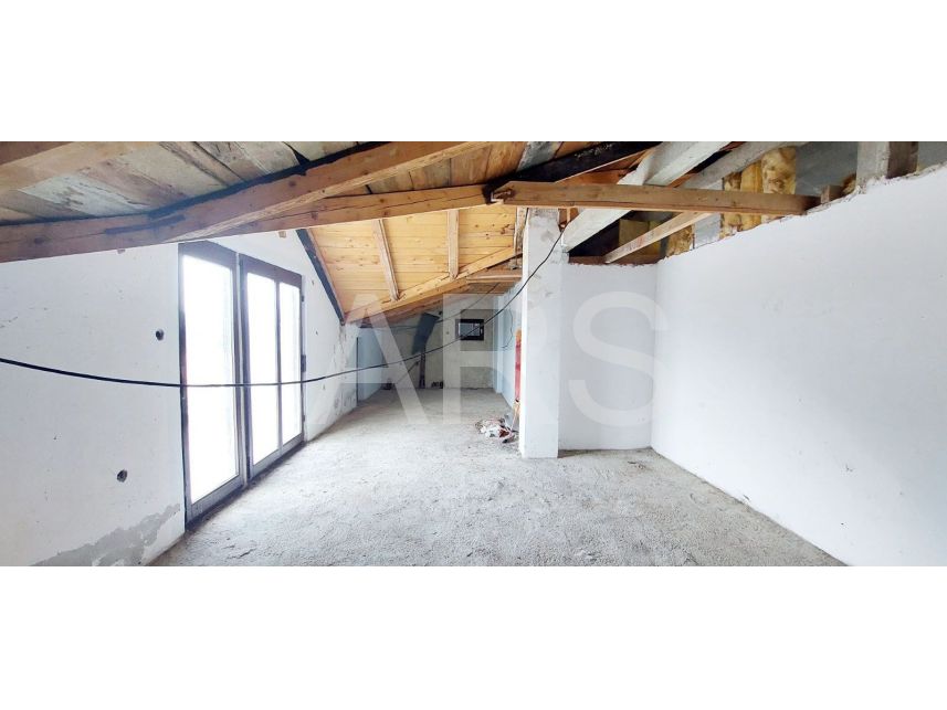 Stan u potkrovlju (85 m2 + loggia + terasa) potrebno je dovršiti i urediti. Stan u prizemlju zahtjeva manju renovaciju, a na katu se iznajmljuje.