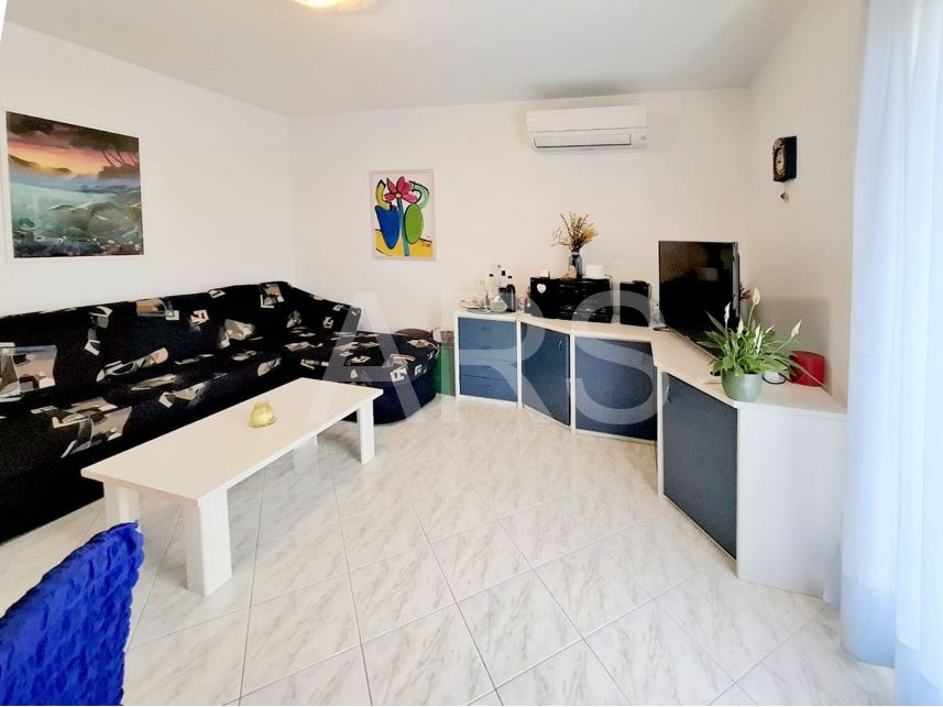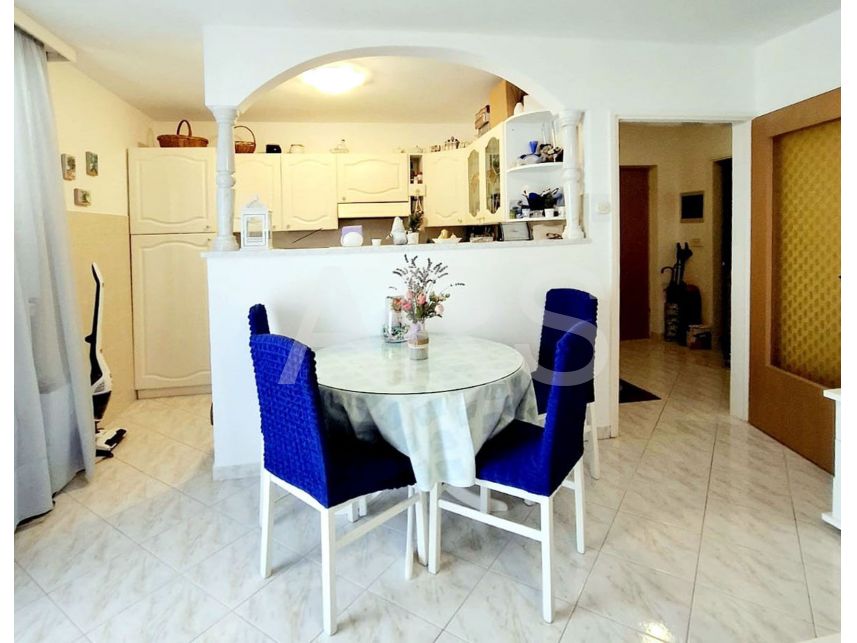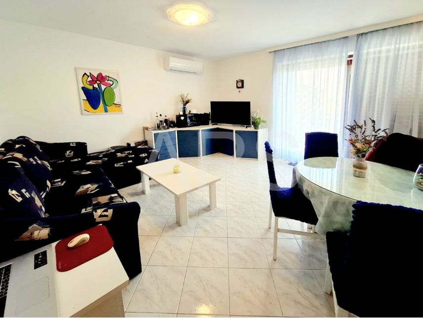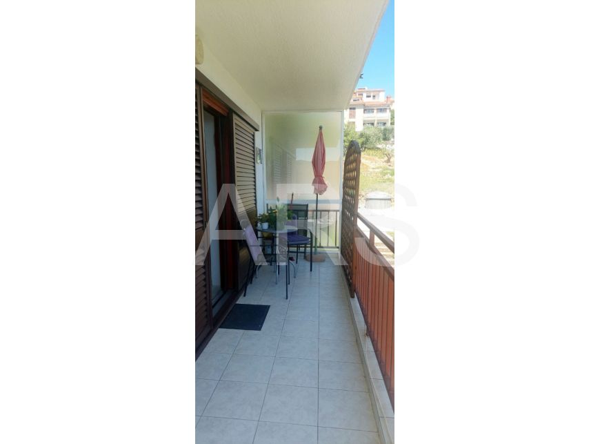 Stan je funkcionalno raspoređen, s otvorenim dnevnim prostorom koji se prirodno nastavlja na terasu — idealno mjesto za jutarnju kavu ili večernje opuštanje uz zalazak sunca.
